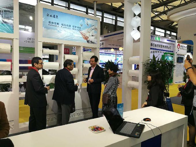 展会期间,公司董事长史成玉受邀出席了由中纺联组织的来自美国、欧洲、印尼、南非及中国香港地区非织造布行业协会圆桌会议,广泛交流了国内外市场信息,董事长发表了公司拓展国内外市场、加快国际化进程的讲话;中国纺织联合会原会长杜钰洲、现任会长孙瑞哲、产业用纺织品协会副会长郑俊林、台湾纺织业拓展会黄伟基秘书长及协会其他领导、专家莅临公司展位,总经理夏伦全详细介绍了公司基本情况及开发生物质纤维水刺新材料和复合整理等功能型新材料,孙会长对公司不断科技创新与产品研发给予了高度评价和期待;副总经理刘双营在“中国国际产业用纺织品及非织造技术交流会”上,作了“生物质山茶花纤维水刺新材料”技术报告,向广大客户推介新产品市场信息。
