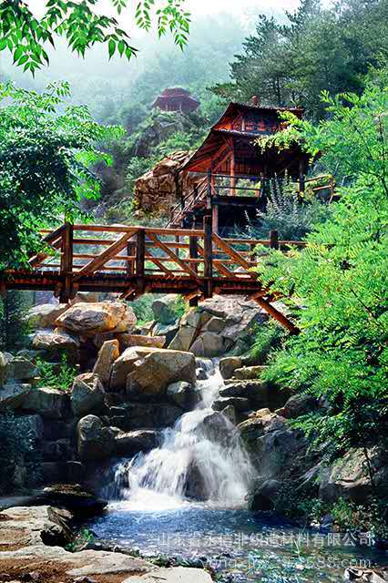 十公里实木栈道,长度堪称世界第一。她将三十六平方公里连绵群山中的山峰、峡谷、清泉、密林、瀑布、溪流巧妙的连缀在一起,形成了中国北方罕见的大型自然生态旅游景区。到达九如山,欣赏的就是瀑布群。高悬的瀑布穿过峡谷,层叠九落,从天池一直流泻到螣蛇潭,悬挂数十处,展示千百态。天河飞练,银雪倾泻,水汽蒸腾,其间山水相映,美景滋生。或以气势,呐喊呼啸,或以秀美,婀娜献媚。水动风移,送出弦外清音;泉涌瀑飞,溅起雾里珠玉。知名者号称九瀑,彰显的是灵动,送出的是畅快,构成的是沁人肺腑的群瀑风光。长十公里的实木栈道,举世无双。这些栈道:有的沿绝壁山崖攀延而设,似天梯;有的横跨山涧飞瀑,似彩虹;有的在藤林中穿梭缠绕,似飞舞的玉带。这种栈道的设置方法颠覆了以单纯观景为目的、传统意义上的旅游模式,彻底打破了人与景观主、客体之间,相对应又相分隔的传统的栈道设置的习惯。既拉近了人与景观的距离,又让人们真正置身于美丽的景色之中,融于大自然、感知大自然、感悟大自然,同时也避免了对生态环境过度的干扰,最大限度解决了生态旅游与保护生态环境的矛盾。