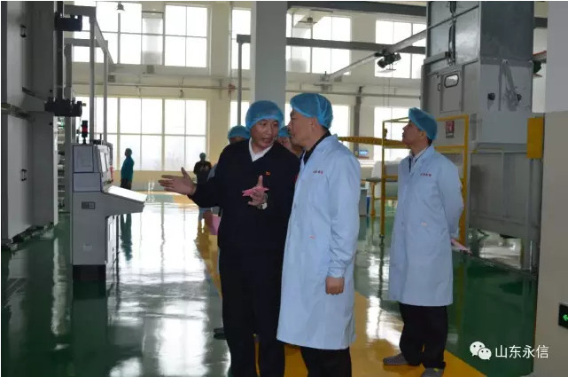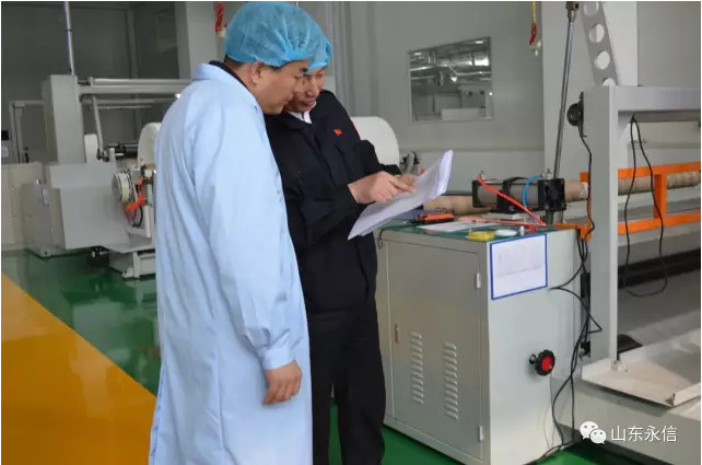 在公司新投产水刺生产线现场,总经理夏伦全向刘书记介绍了该条生产线的性能特点:自动化程度高,产量大,生产工艺先进,质量技术指标稳定,既能生产平纹,又能生产提花、网孔及多种纺织原料的系列水刺布;刘书记对该生产线顺利投产达效,表示祝贺,希望我们再接再厉,永攀产量和质量新高,同时叮嘱我们要重视安全生产和环境保护等。在企业技术中心,夏总介绍了中国医卫用水刺非织造材料研发基地、与东华大学产学研合作运行情况,并陪同参观了物理和生化实验室;在实验室,刘书记用心询问了检测仪器设备的先进性和使用情况,特别是对产品质量标准提出了要求,要有国际化视野和前瞻性质量意识。在产品展示中心,夏总介绍公司自主研发生产的系列生物质新材料非织造产品(甲壳质、山茶花、木糖醇、草珊瑚、薄荷、白竹炭等生物质纤维水刺布及后制品)及其市场前景、应用领域、产品特性;刘书记了解到甲壳质、山茶花、草珊瑚水刺新材料具有很好的抑菌抗菌之功效,又是绿色环保的新兴材料时,很是高兴,希望公司抢抓市场机遇,加速推进永信生物质新材料生产基地建设,区委区政府一定会做好相关产业政策扶持和落地。