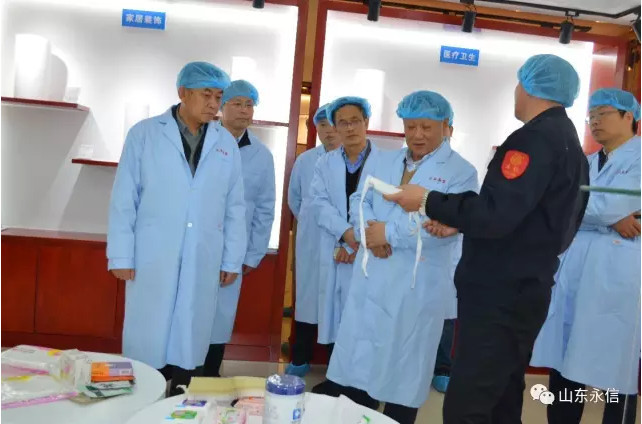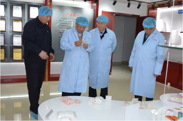 在一车间生产现场,刘总裁认真查看公司第一条水刺生产线,对公司在设备改造设备保养及现场保持给予肯定,考察完一二三车间,对公司稳定发展、每条生产线设备先进性不断提升,给予表扬,现场对中国纺织机械集团、郑纺机领导提出了加快设备稳定性智能化研制步伐,为民族工业发展贡献力量和智慧,同时也希望水刺企业思考对目前设备还存在哪些不足,在智能制造等方面还有那些改进;考察中,董事长介绍了水刺生产所用的原料、工艺流程、质量控制及企业管理等。在企业技术中心,董事长介绍了中国医卫用水刺非织造材料研发基地、与东华大学产学研合作运行情况,并陪同参观了物理和生化实验室。在产品展示中心,董事长介绍公司自主研发生产的系列生物质新材料非织造产品(甲壳质、山茶花、木糖醇、草珊瑚、薄荷、白竹炭等生物质纤维水刺布及后制品)及其市场前景、应用领域、产品特性,还介绍了甲壳质、山茶花、草珊瑚具有很好的抑菌抗菌之功效,可降解,符合国家绿色环保产业政策,刘总裁了解这些后很是高兴,希望公司抢抓市场机遇,快速发展。