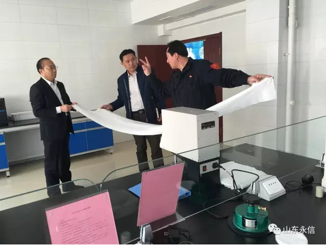 2017年3月16日下午,明水经济开发区袁乃杰常务副主任、经发局潘立浩局长等一行莅临公司指导工作,公司总经理夏伦全陪同视察了水刺五线生产现场、企业技术中心,董事长史成玉先生与开发区领导进行了建设性的会谈。