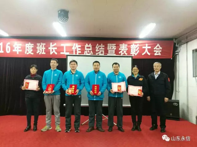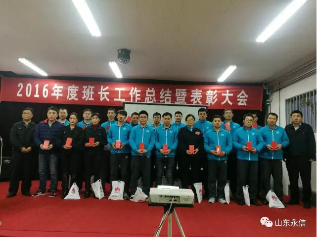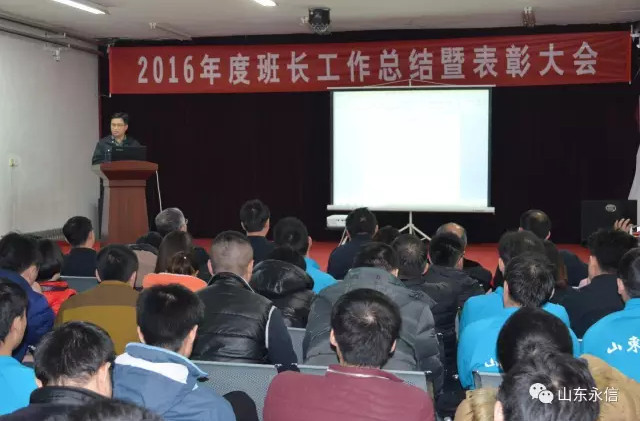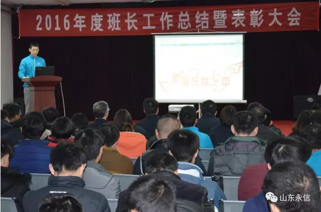 2016年12月26日,公司“2016年度班长工作总结暨表彰大会”在公司多功能厅隆重举行。永信润荷公司全体管理人员、班组长、不在岗的车间员工参加了此次会议。