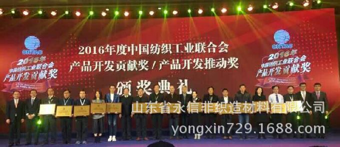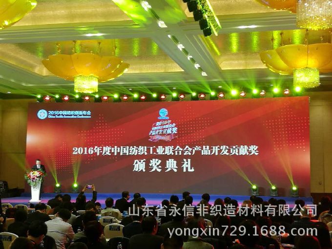 之后,中国纺织联合会三位副会长就“十三五”时期中国纺织服装、家纺及产业用纺织品进行了主题演讲,特别是中国纺织工业联合会副会长、中国产业用纺织品行业协会会长李陵申做的“新技术、新品种、新贡献”的演讲,在演讲中,李会长详细讲介绍了“十二五”期间我国产业用纺织品行业在新产品开发方面取得的重点突破和突出贡献,并对“十三五”期间该行业在战略新材、环境保护、医疗健康、应急和公共安全、基础设施建设配套和“军民融合”等领域创新驱动发展进行论述。这些战略定位和前瞻性思维都给了我们永信非织造材料有限公司很好的工作指引,我们一定会结合企业发展实际,紧扣行业发展战略趋势驱动,进一步关注产品结构调整及产品创新和研发,争做行业发展践行者和引领者。