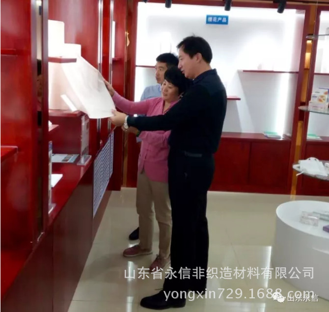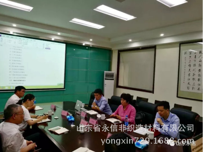 2017年9月29日,中国产业用纺织品行业协会副会长李桂梅、秘书长张传雄、主任季建兵莅临永信公司开展调研,山东省永信非织造材料有限公司董事长、总经理、副总经理,济南永信新材料科技有限公司总经理、常务副总经理陪同考察调研。