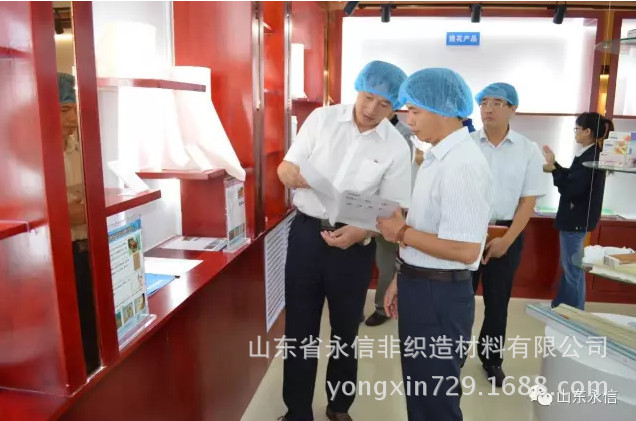 在企业技术中心,夏总陪同参观了物理和生化实验室;在产品展示中心,夏总介绍公司自主研发生产的系列生物质新材料非织造产品及其市场前景、应用领域、产品特性。