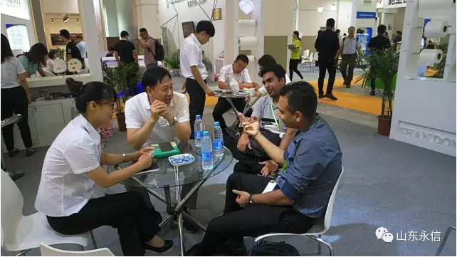 6月21-23日,为期3天的“2017中国国际非织造材料展览会暨高端论坛”(2017CINE)在上海世贸商城开幕。作为目前国内非织造领域最专业的展会,2017CINE旨在促进非织造布行业健康平稳的发展、协助业内企业挖掘更多的市场机遇,同时满足市场需求。展会期间,来自国内外百余家非织造布行业全产业链骨干企业展示了涉及原材料、工艺设备、卷材到最终制品各环节的最新发展状况。2017CINE由中国产业用纺织品行业协会、中国国际贸易促进委员会纺织行业分会、美国非织造协会、法兰克福展览(香港)有限公司共同主办,占地面积超过6000平方米,专业观众超过5000人。山东省永信非织造材料有限公司董事长和总经理带领营销部、国际贸易部的同志们组成的参展团队参加了此次展会。我们以自搭展台形式独立参展,展区面积达72平米,设立了直铺、交叉和水刺新产品展示区,得到了客户的认可。通过展台创意设计,并在灯光、视频音像等设施的配合下,产品得到了很好的展示;不仅宣传了我司产品、服务理念和企业文化,吸引了众多客商前来我司展台参观沟通洽谈,而且通过业务人员热情周到的接待、耐心细致讲解,三天内共接待国内35家,国外客户16家,分别进行了深入洽谈,尤其国外客户的到访合作热情都很高涨,现场给予量的承诺,同时也有诸多新客户首次接触洽谈。我们展示了甲壳素、草珊瑚纤维、薄荷纤维、山茶花、木糖醇纤维等特殊原料制成的水刺功能性无纺布以外,我司新推出的上浆及后整理功能性水刺布引起了新客户的关注,同时老客户通过试单也对我司上浆后整理产品表示认可并提出改进意见。与客户及行业专家交流期间,给了我们在产品研发工作,提出了许多有益的思路和方向,对产品结构的调整和市场的开发提供了很好的参考。