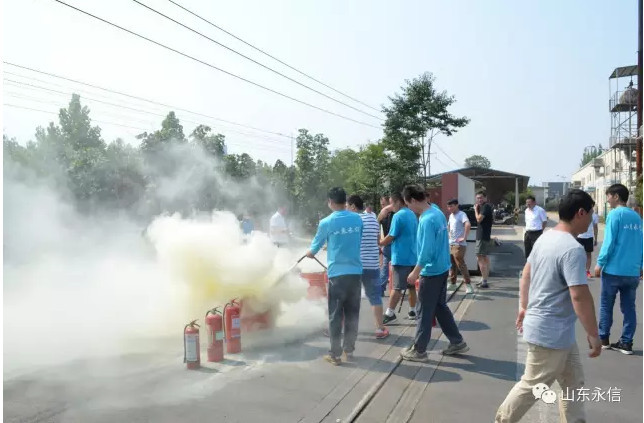 根据公司2017年安全工作管理及二级安全标准化的要求,2017年6月16日举行了消防演练。公司董事长、总经理高度重视演练活动,全体人员各司其职,认真负责,确保了演练的万无一失,取得了圆满成功。通过此次消防演练,为公司全体员工提供了一次实战模拟训练,增强了职工防范和自救能力,为真正的事故应急提供了宝贵经验。