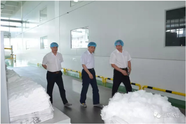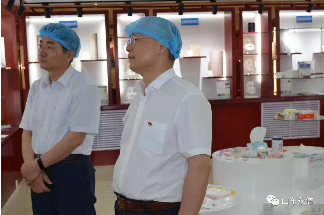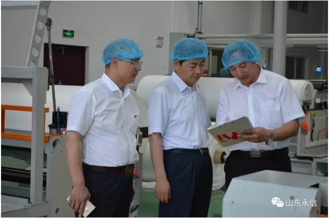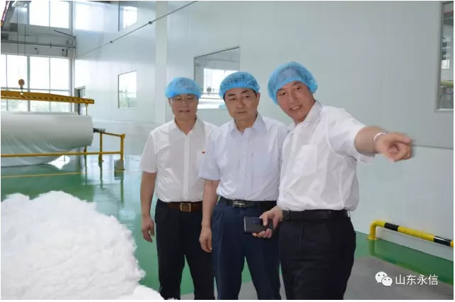 在公司贵宾接待室,董事长史成玉与王继民同志进行了深刻的洽谈,在公司新投产水刺生产线现场,董事长史成玉向王继民同志介绍了该条生产线的性能特点:自动化程度高,产量大,生产工艺先进,质量技术指标稳定,既能生产平纹,又能生产提花、网孔及多种纺织原料的系列水刺布;王继民主任对该生产线顺利投产达效,表示祝贺,希望我们再接再厉,永攀产量和质量新高,同时叮嘱我们要重视安全生产和环境保护等。在产品展示中心,公司总经理夏伦全介绍了公司自主研发生产的系列生物质新材料非织造产品(甲壳质、山茶花、木糖醇、草珊瑚、薄荷、白竹炭等生物质纤维水刺布及后制品)及其市场前景、应用领域、产品特性;王继民主任希望公司抢抓市场机遇,加速推进永信生物质新材料生产基地建设,区委区政府一定会做好相关产业政策扶持和落地。
